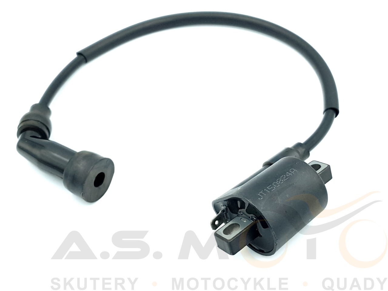 Cewka zapłonowa z przewodem oraz fajką, przeznaczona do skuterów, motorowerów, motocykli. Posiada wyjście pod żeńską, płaską wsuwkę.