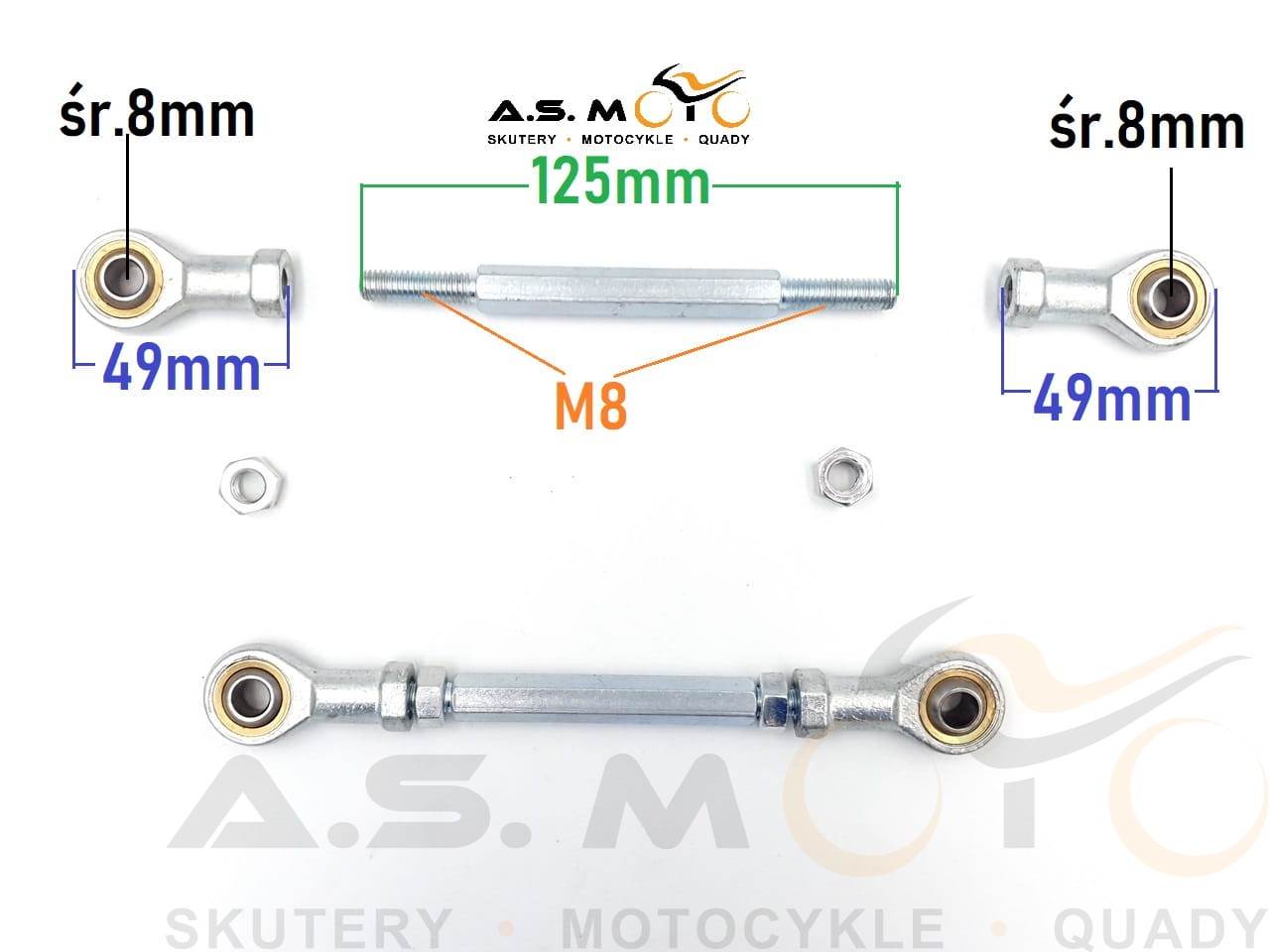 - Gwint drążka kierowniczego: M8 gwint prawy oraz gwint lewy