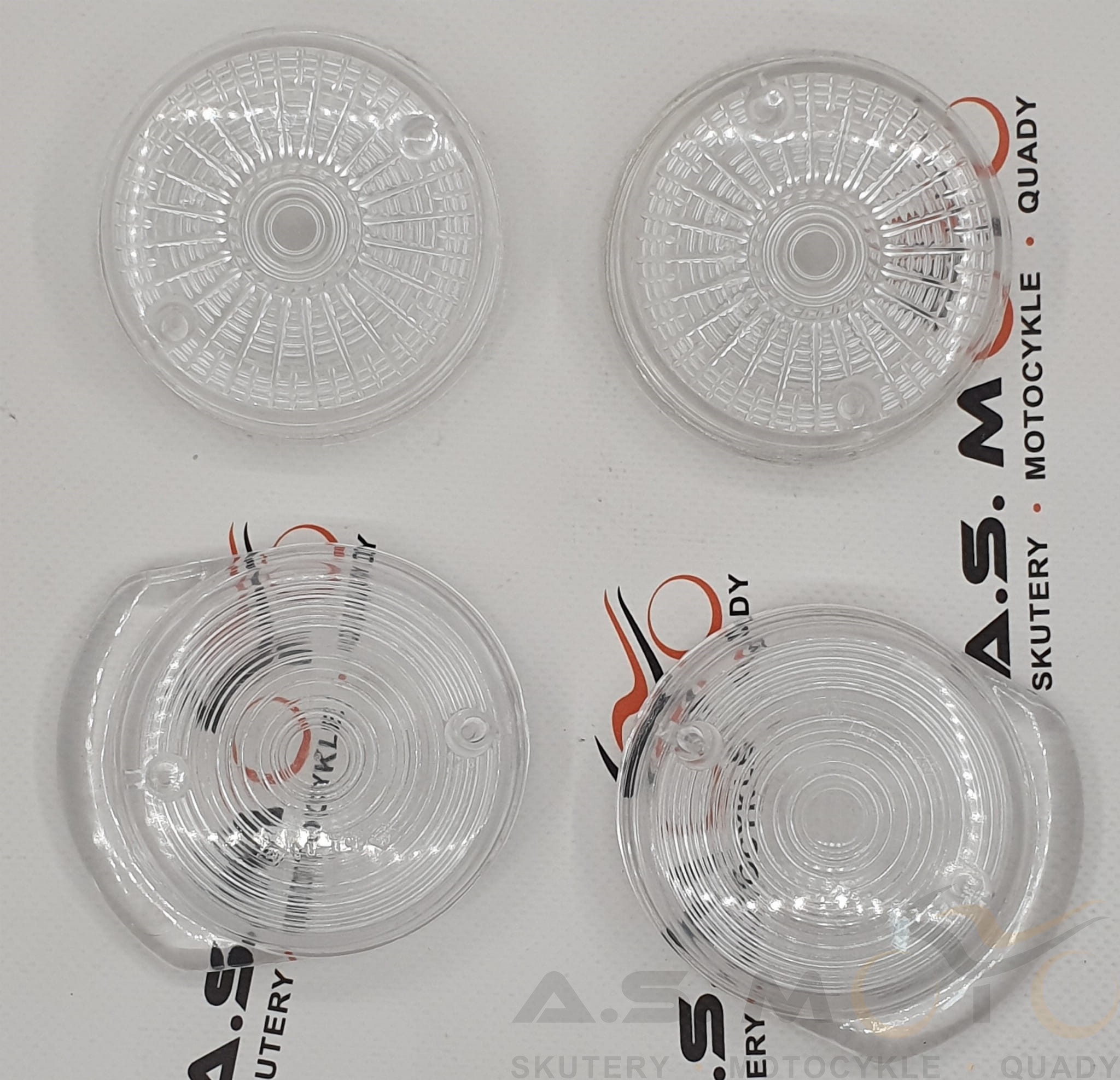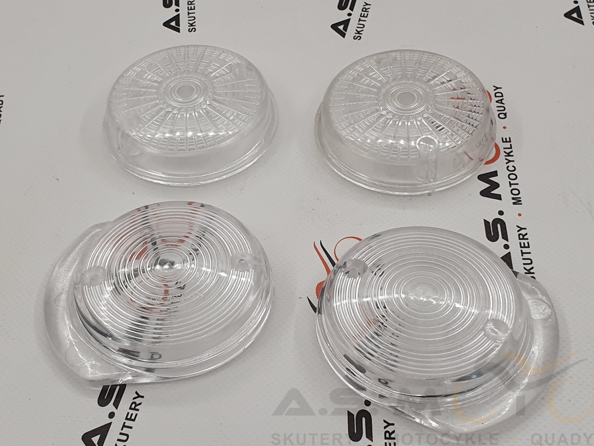 Komplet kloszy kierunkowskazów przód i tył okrągły przeźroczysty.