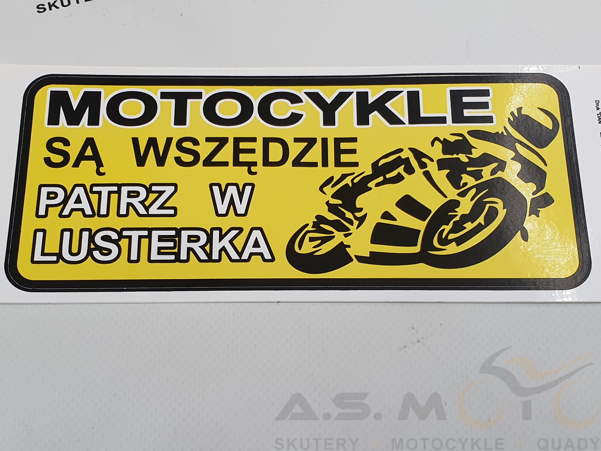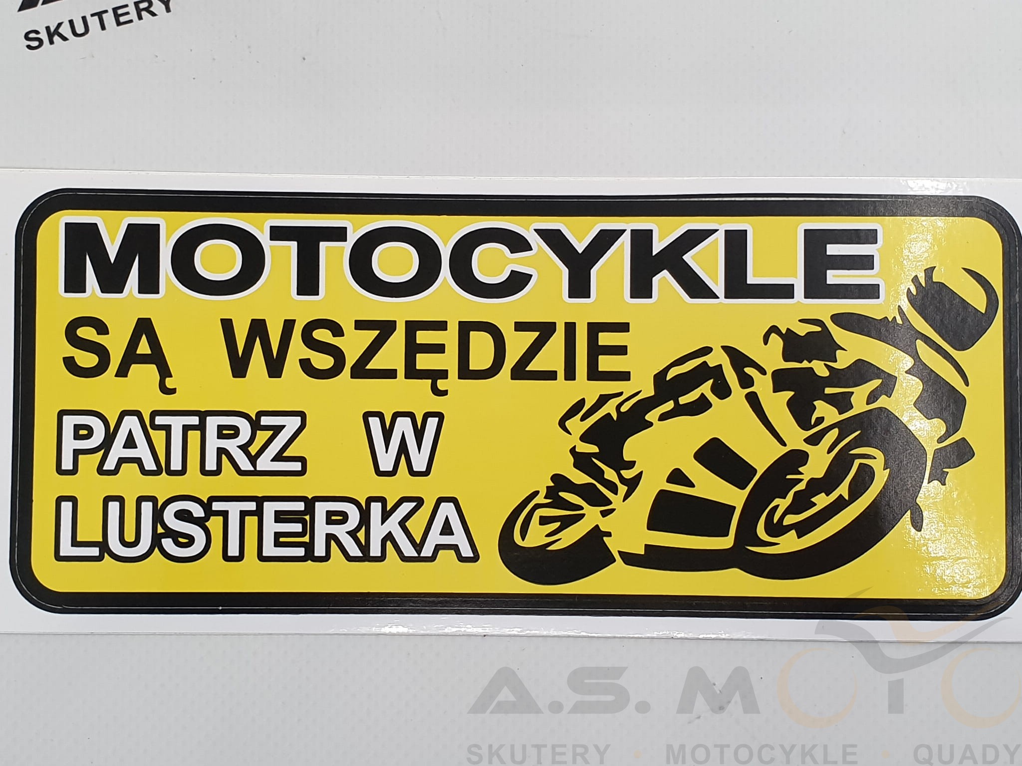 MOTOCYKLE SĄ WSZĘDZIE PATRZ W LUSTERKA na żółtym tle. logo motocyklisty.