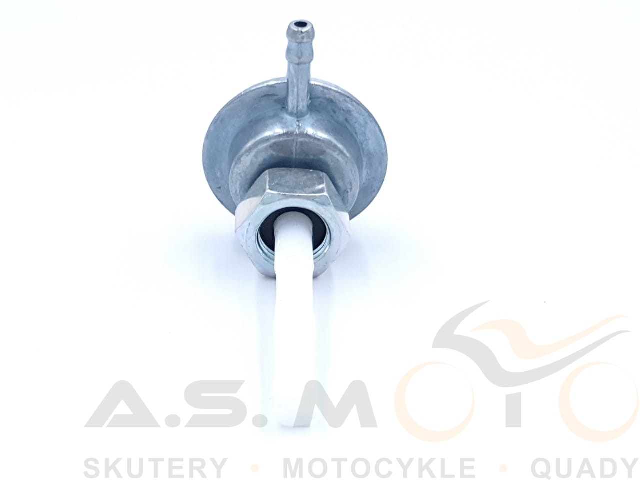 Podciśnieniowy kranik paliwa przykręcany pod zbiornikiem, gwint M16. Na klucz 22 mm. Kranik wyposażony w filtr paliwa oraz podkładkę gumową uszczelniającą.