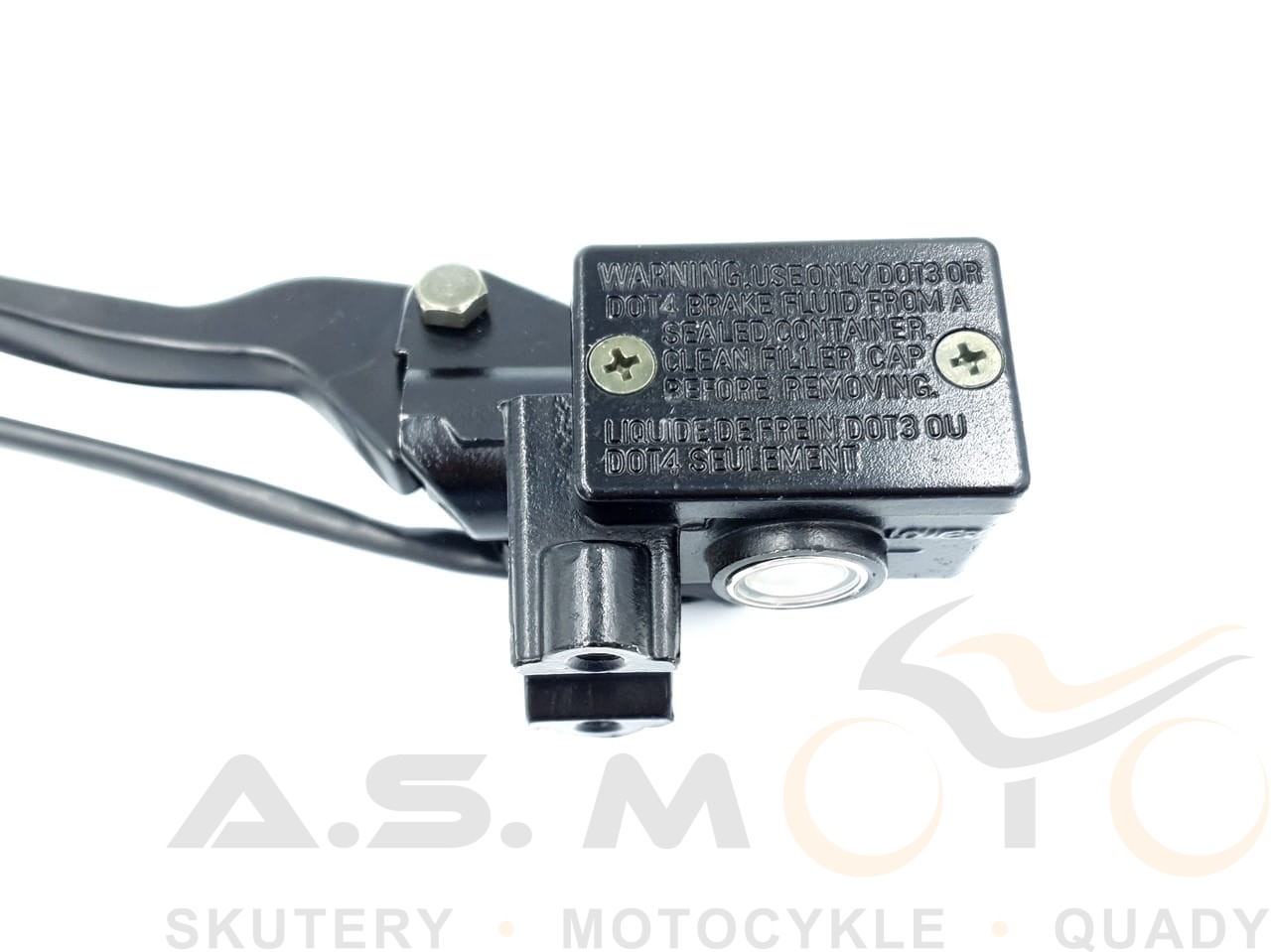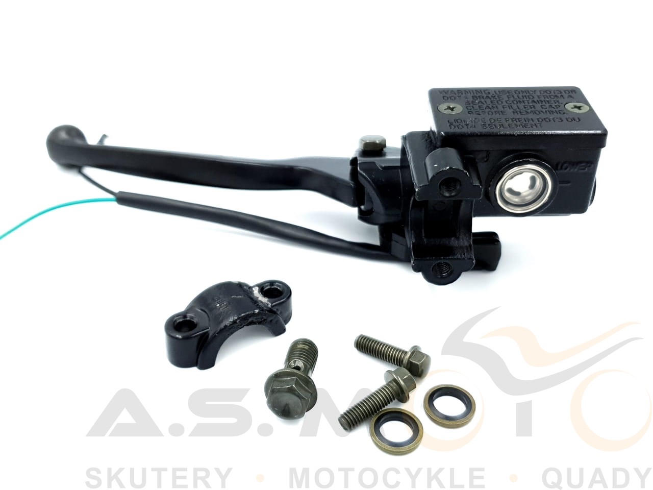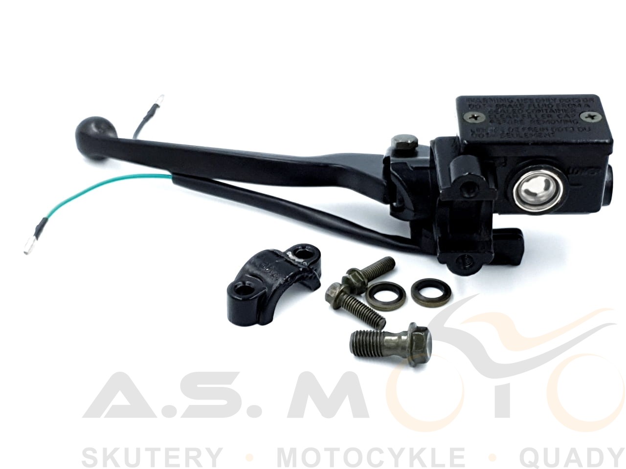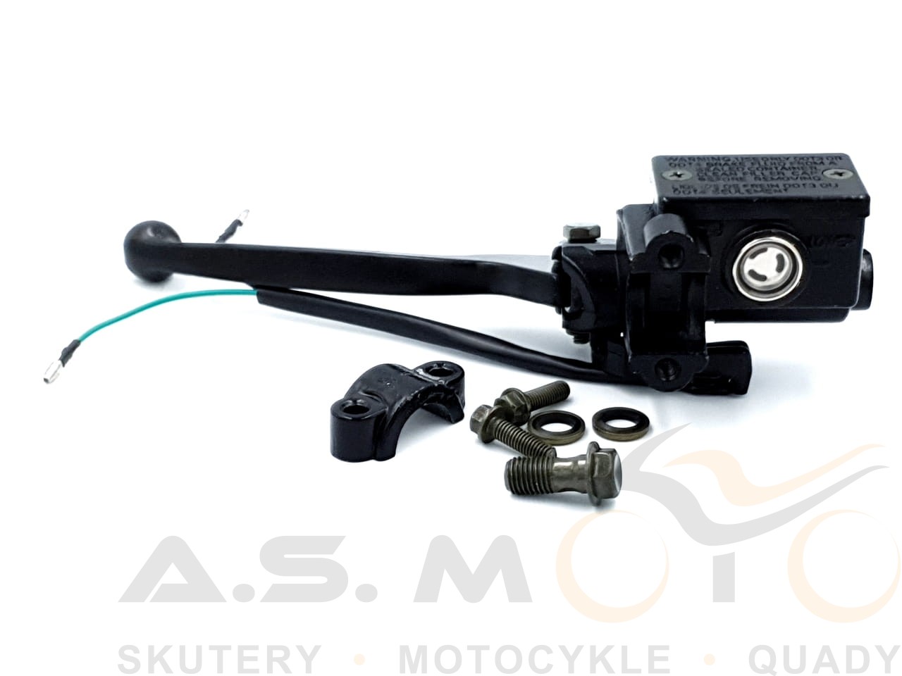 Pompa hamulcowa hamulca tylnego. Dostarczana razem z czujnikiem stopu, oraz dźwignią hamulca. Czujnik posiada dwa kable z wsuwkami, uchwyt i śruby potrzebne do montażu. Pompa gotowa do montażu.